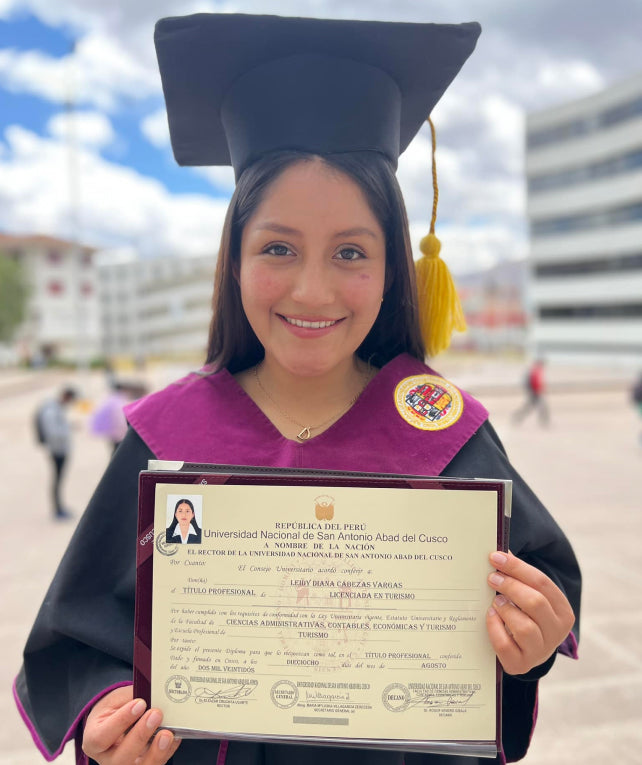 Paka Scholar Leydi Diana just received her title as a licensed professional in tourism from the National University in Cusco.