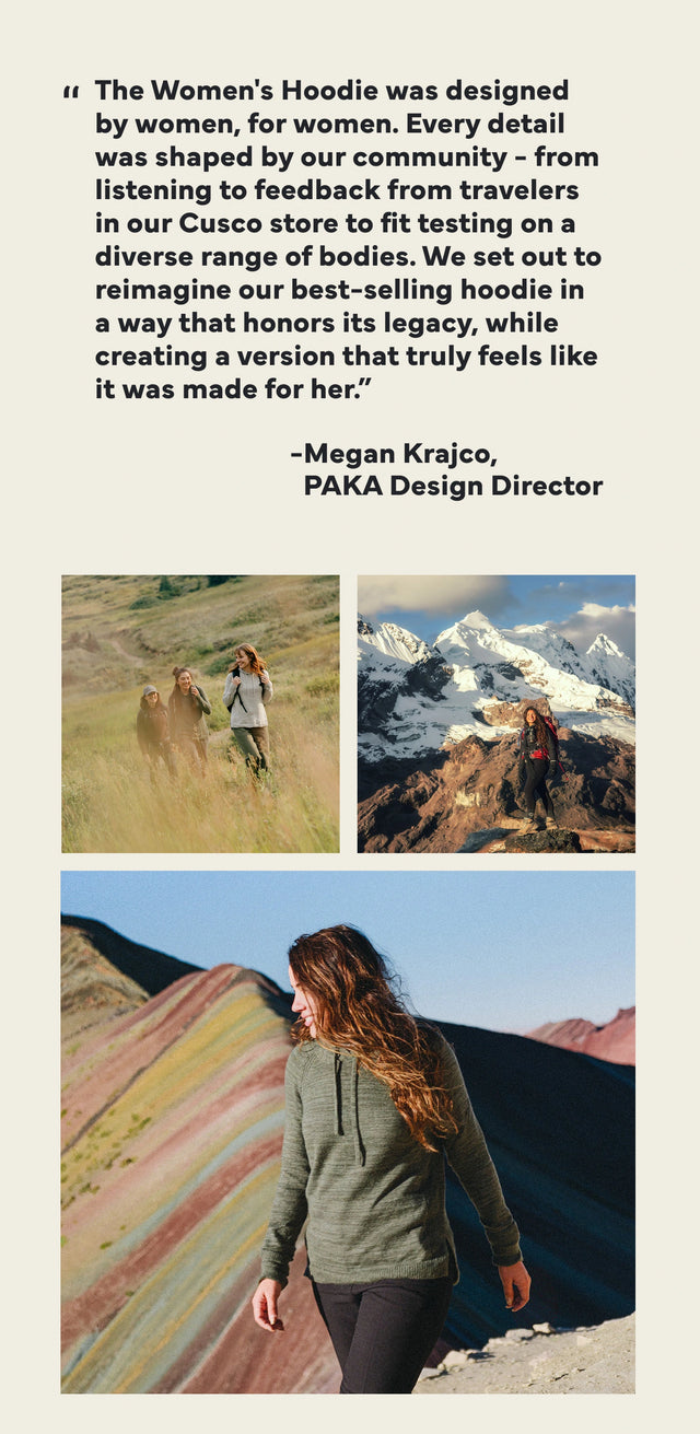 We listened. The new Women’s Hoodie keeps everything you loved about the original - the natural performance, the cozy softness, the everyday style, and of course the support for the people who make it in Peru - and reimagines it with a silhouette designed for a more feminine fit.