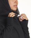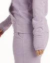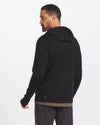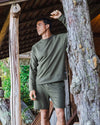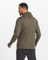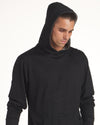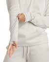 Raglan armholes for movement and tall rib cuffs with cozy thumbholes