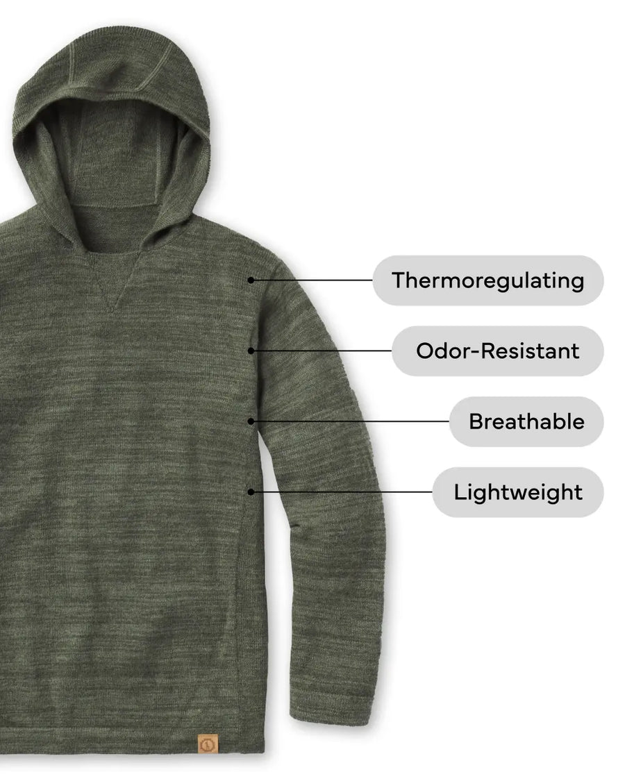 Our blend uses Royal Alpaca (18-19 microns), meaning you can wear this pullover sweater hoodie without an undershirt.