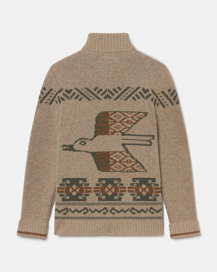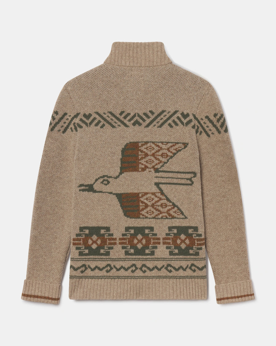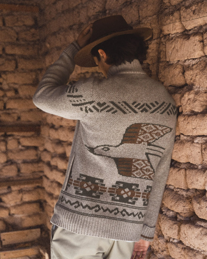 Beyond simply “inspired by,” the Heritage Collection was co-created directly with the Centro de Textiles Tradicionales del Cusco—incorporating the artisans’ stories and traditions into each style—with 5% of sales going back to the CTTC to support Quechua weavers and their families. This alpaca-merino wool blend cardigan is ethically crafted in Peru with an all-over birdseye stitch, giving it a cozy jacket weight in an heirloom-worthy style. The striking pattern on the back represents Inca culture in three parts: The condor or “Hanan Pacha” for the upper world, the puma paw or “Kay Pacha” for our world of the living, and the snake or “Ukhu Pacha” for the lower world. At PAKA, these sacred symbols honor this beautiful perspective and respect for all stages of life—as we hope they will for you as well.