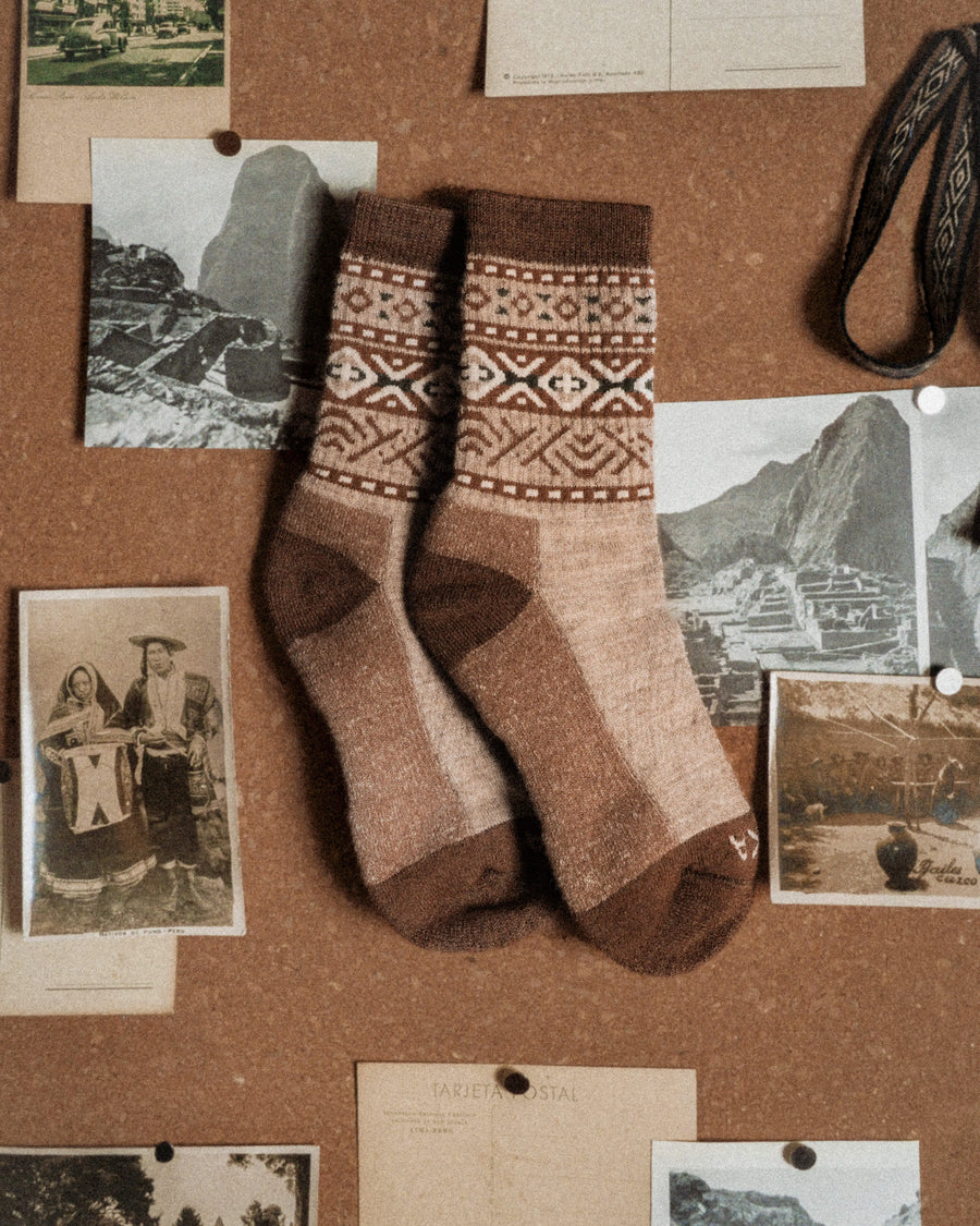 Beyond simply “inspired by,” the Heritage Collection was co-created directly with the Centro de Textiles Tradicionales del Cusco—incorporating the artisans’ stories and traditions into each style—with 5% of sales going back to the CTTC to support Quechua weavers and their families. Cozy rib stitching at the calf and alpaca-powered fabric keep these sustainable thermal socks comfy and dry mile after mile. It features a compass, or “Challaypu” pattern with the diamond representing the union of south, north, east and west in Inca culture. Here at PAKA, the motif also reminds us to trust our intuition to guide us in the right direction. We hope these warm, patterned socks keep you feeling cozy and confident as well, wherever life leads.