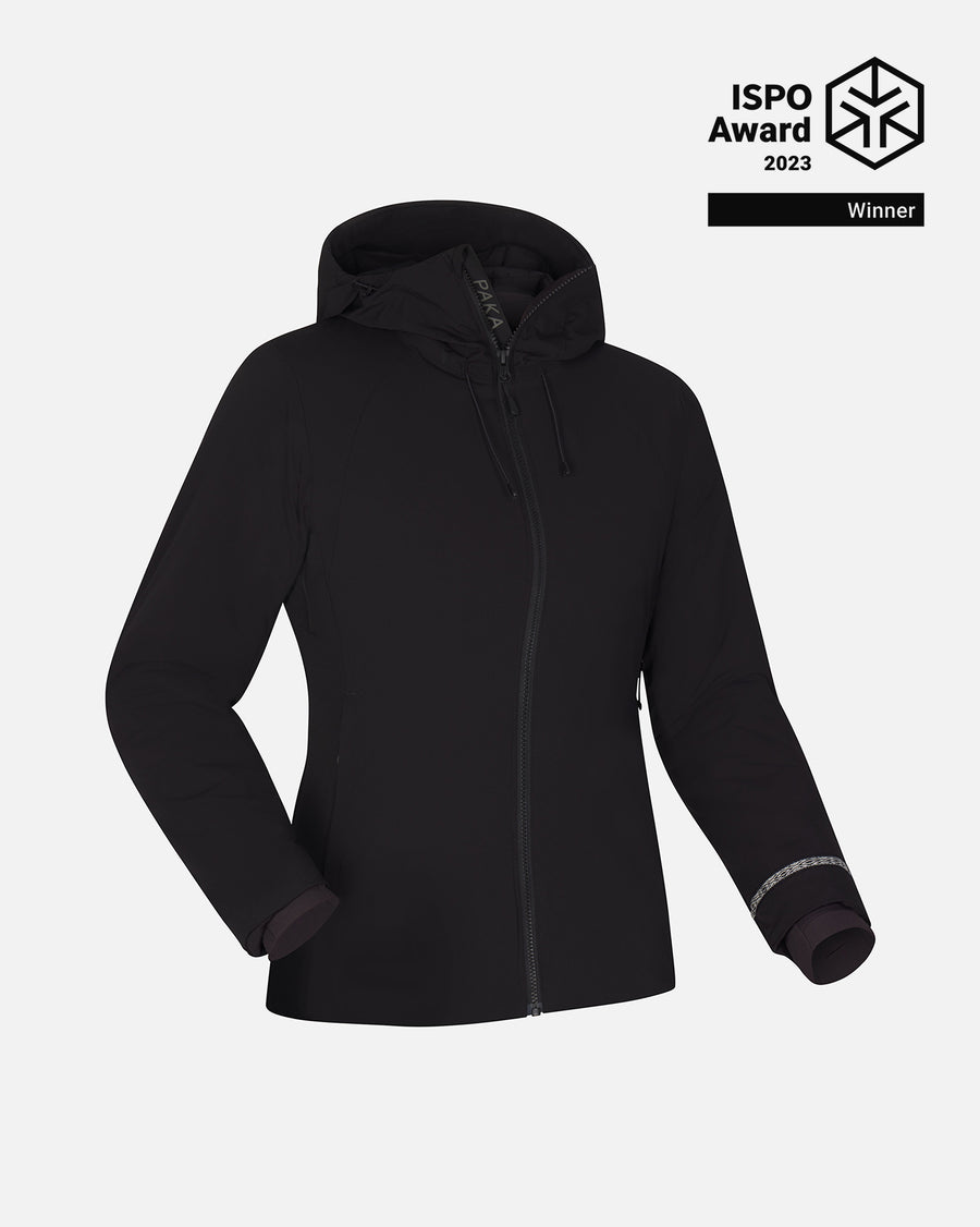 The Apu Parka was designed to enhance the benefits of PAKAFILL® insulation, performing from freezing temperatures at rest to aerobic activities on the mountain. We used 130 GSM in the body and 110 GSM in the sleeves and hood to maximize mobility. To increase the comfort range, we added a breathable lining and armpit zips. The result is a shiver- and sweat-proof winter jacket for skiing, snowboarding and other outdoor adventures.