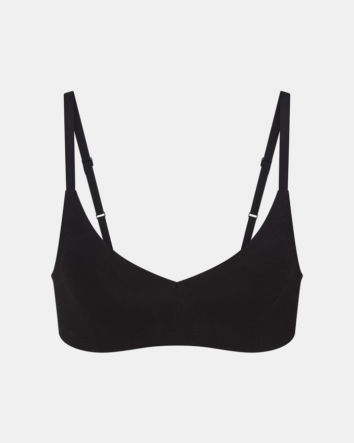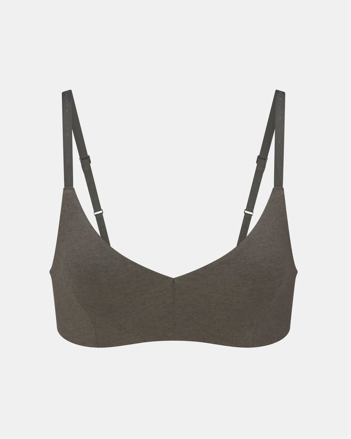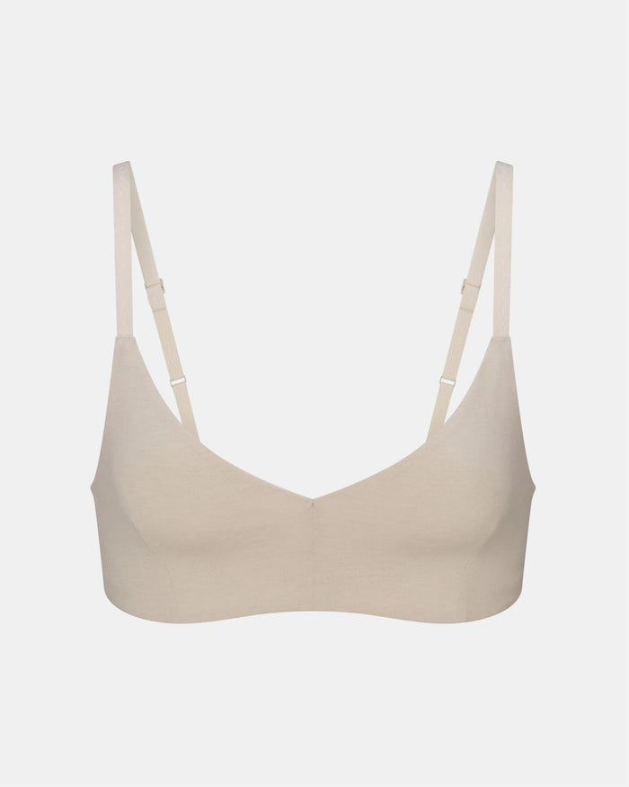 Meet our Essentials Collection: made with our proprietary natural fiber triblend yarn of buttery-soft Royal Alpaca, breathable Tencel™, and organic Pima Cotton, plus the just the right amount of spandex to stay in place all day long. This fun triangle-cup bralette is naturally moisture-wicking, odor-resistant, and never itchy. Wireless and padless for a super soft and barely there feeling, the deep ‘V’ design makes for a flattering silhouette, with light to moderate support depending on bust size. The straps feature an embossed Inca pattern that looks great peeking out of any off-shoulder style.