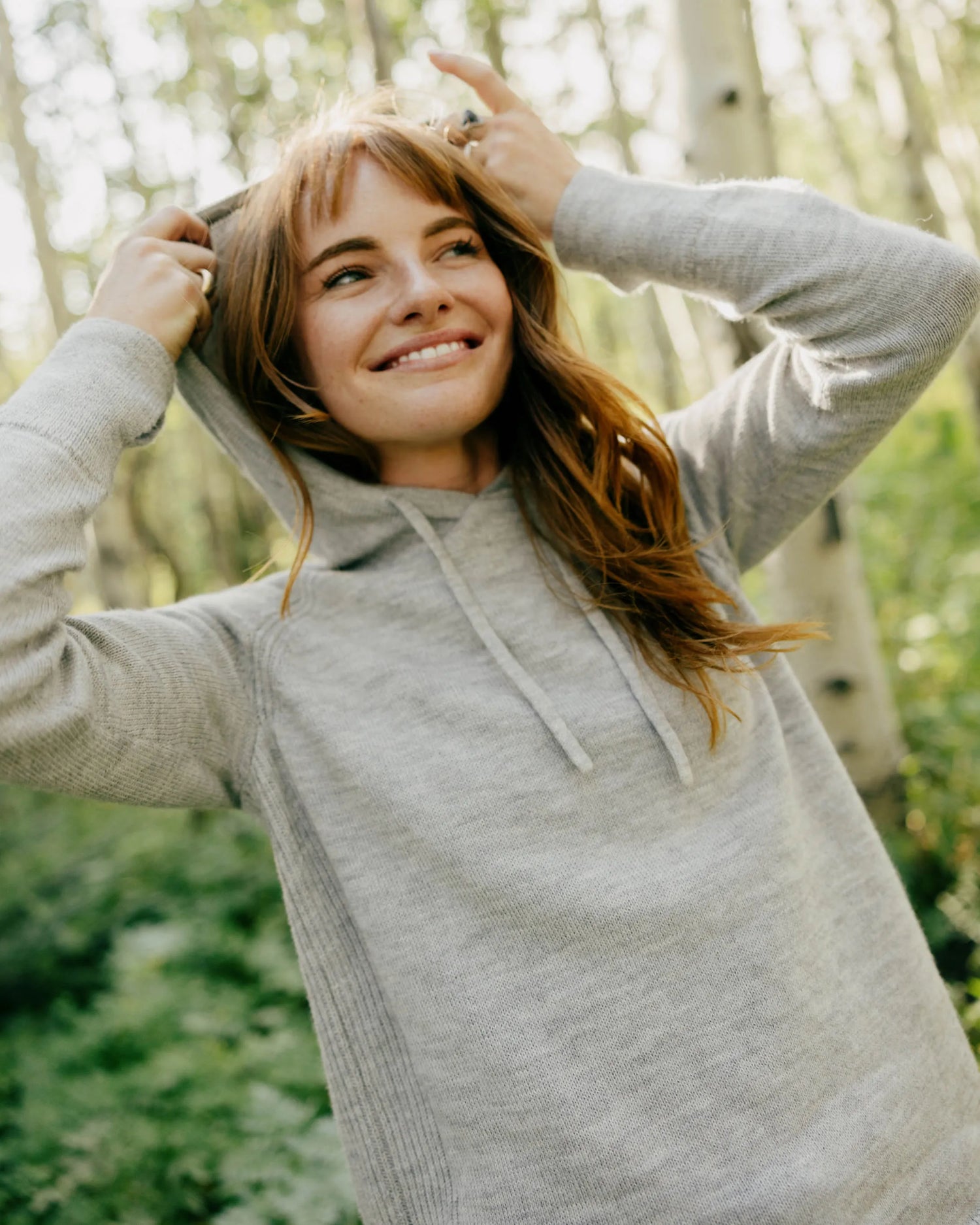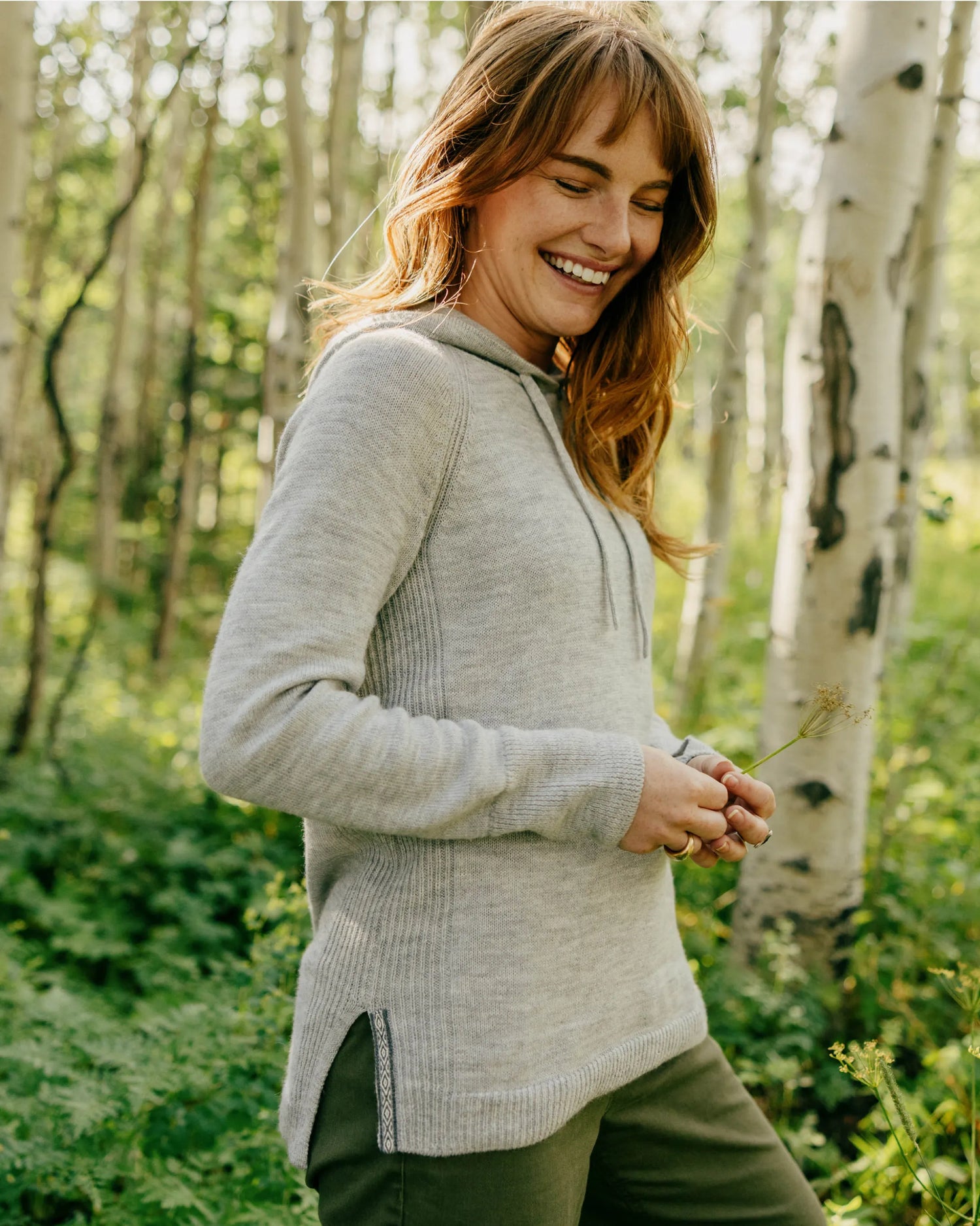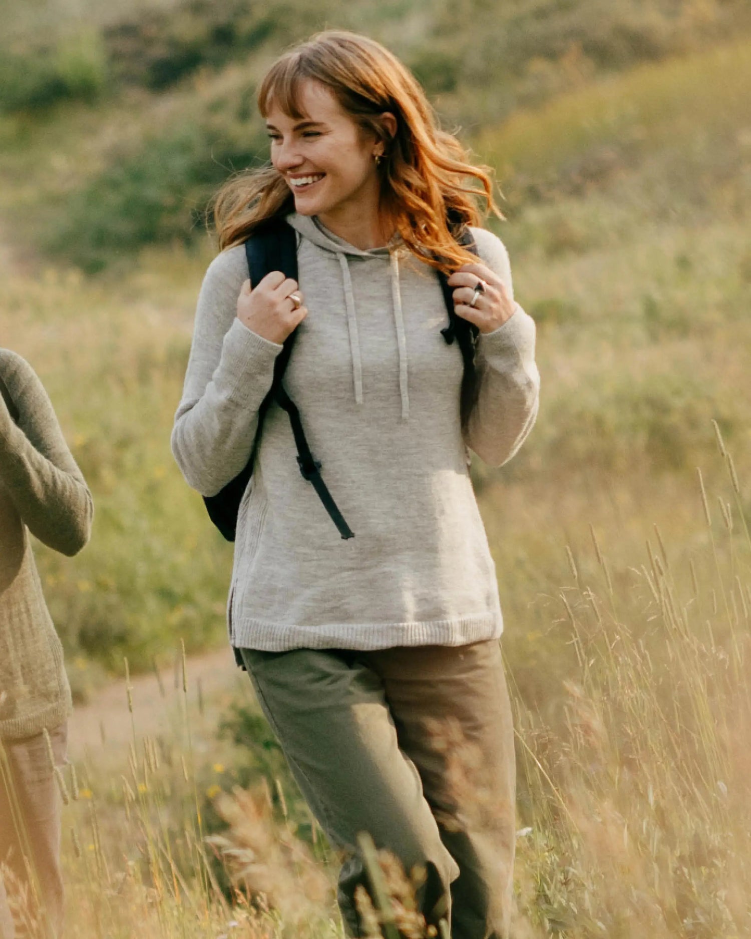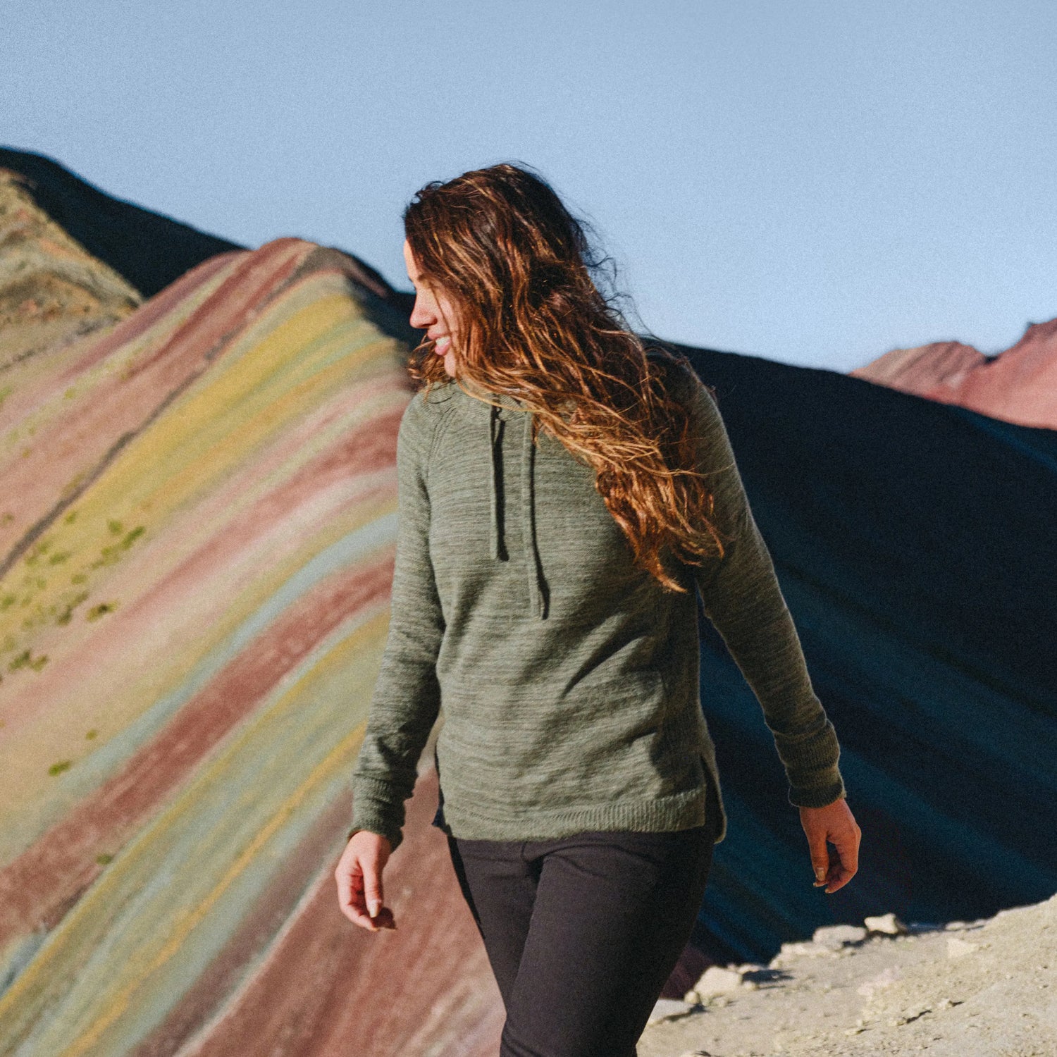 You asked, and we heard you loud and clear! The Women's Hoodie is a fresh take on our best-selling Hoodie, with a pullover design made just for her. We updated the fit to a more sleek and flattering look, and kept the things fans loved: supersoft and durable Royal Alpaca yarn blend, a hand-woven Inca ID, and signed by the artist who worked on it. The back is slightly longer than the front, for a more dynamic look with a bit of extra coverage (great for leggings), while side slits allow for unrestricted movement at the hips. Lightweight, breathable, and temperature-regulating, this alpaca hooded sweater for women provides easy comfort, from everyday to adventure.