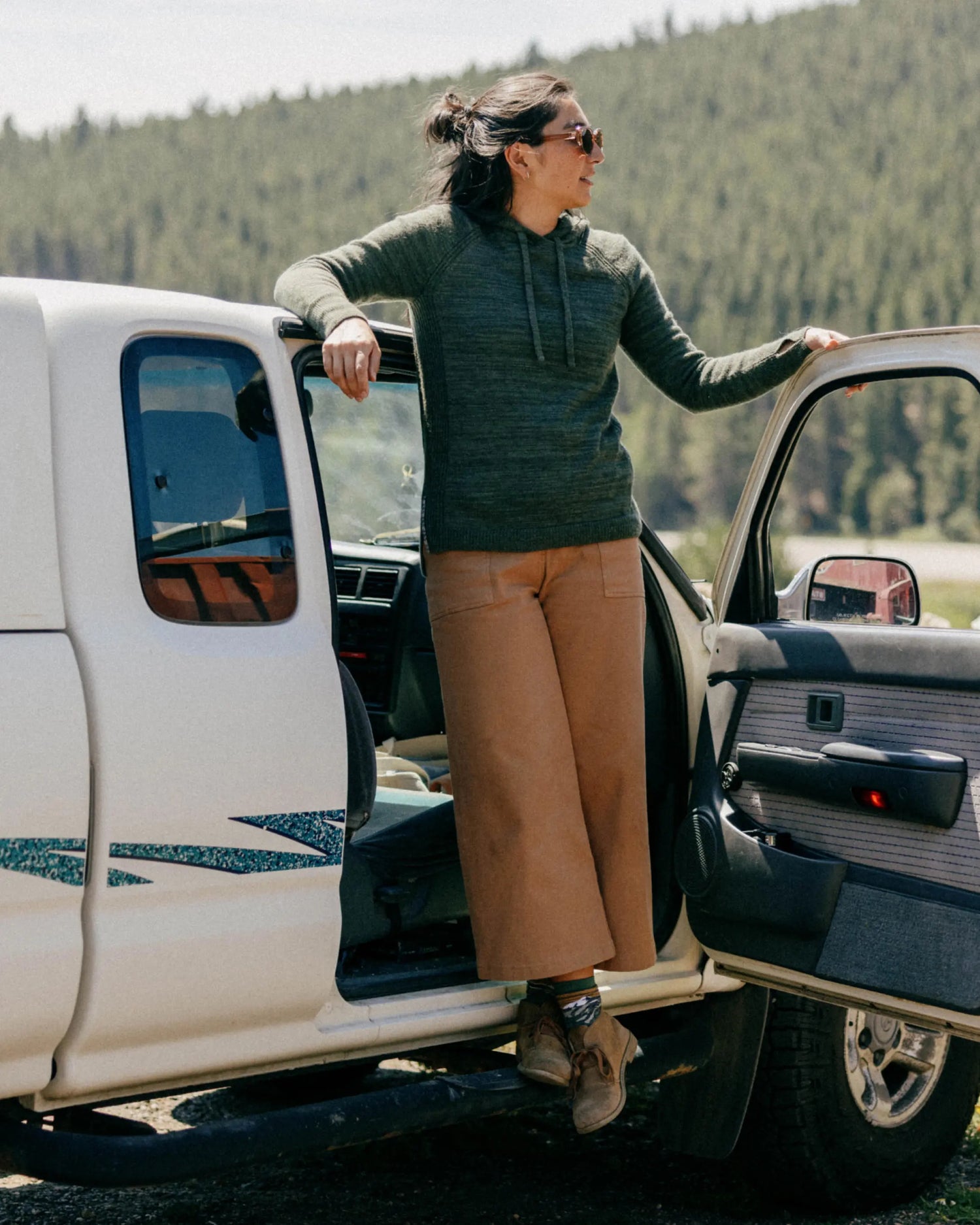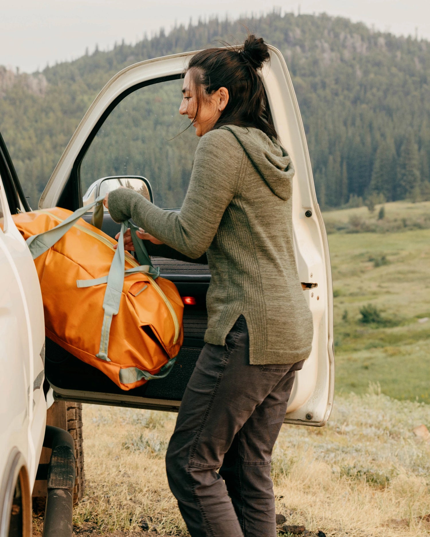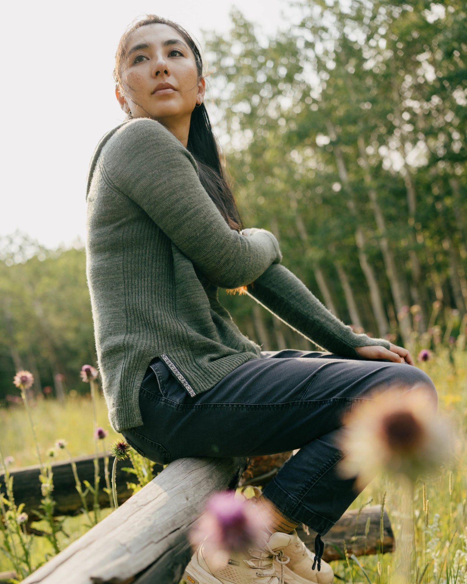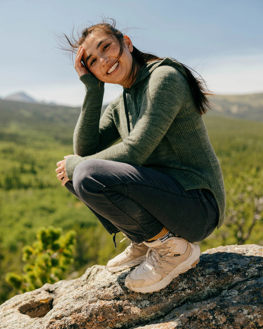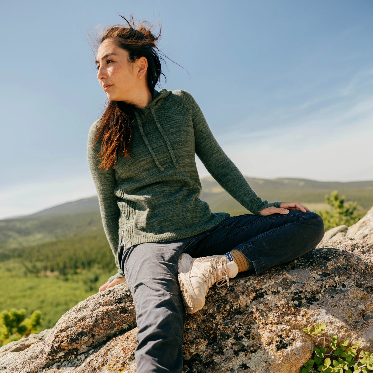 You asked, and we heard you loud and clear! The Women's Hoodie is a fresh take on our best-selling Hoodie, with a pullover design made just for her. We updated the fit to a more sleek and flattering look, and kept the things fans loved: supersoft and durable Royal Alpaca yarn blend, a hand-woven Inca ID, and signed by the artist who worked on it. The back is slightly longer than the front, for a more dynamic look with a bit of extra coverage (great for leggings), while side slits allow for unrestricted movement at the hips. Lightweight, breathable, and temperature-regulating, this alpaca hooded sweater for women provides easy comfort, from everyday to adventure.