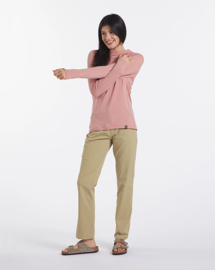 Designed to help you chase the sun while staying protected with UPF 30+. Stay outside from dawn to dusk with the performance movement, ultra-soft comfort, and breathable, odor-resistant design of this lightweight women’s sun hoodie made with a natural alpaca fiber blend.