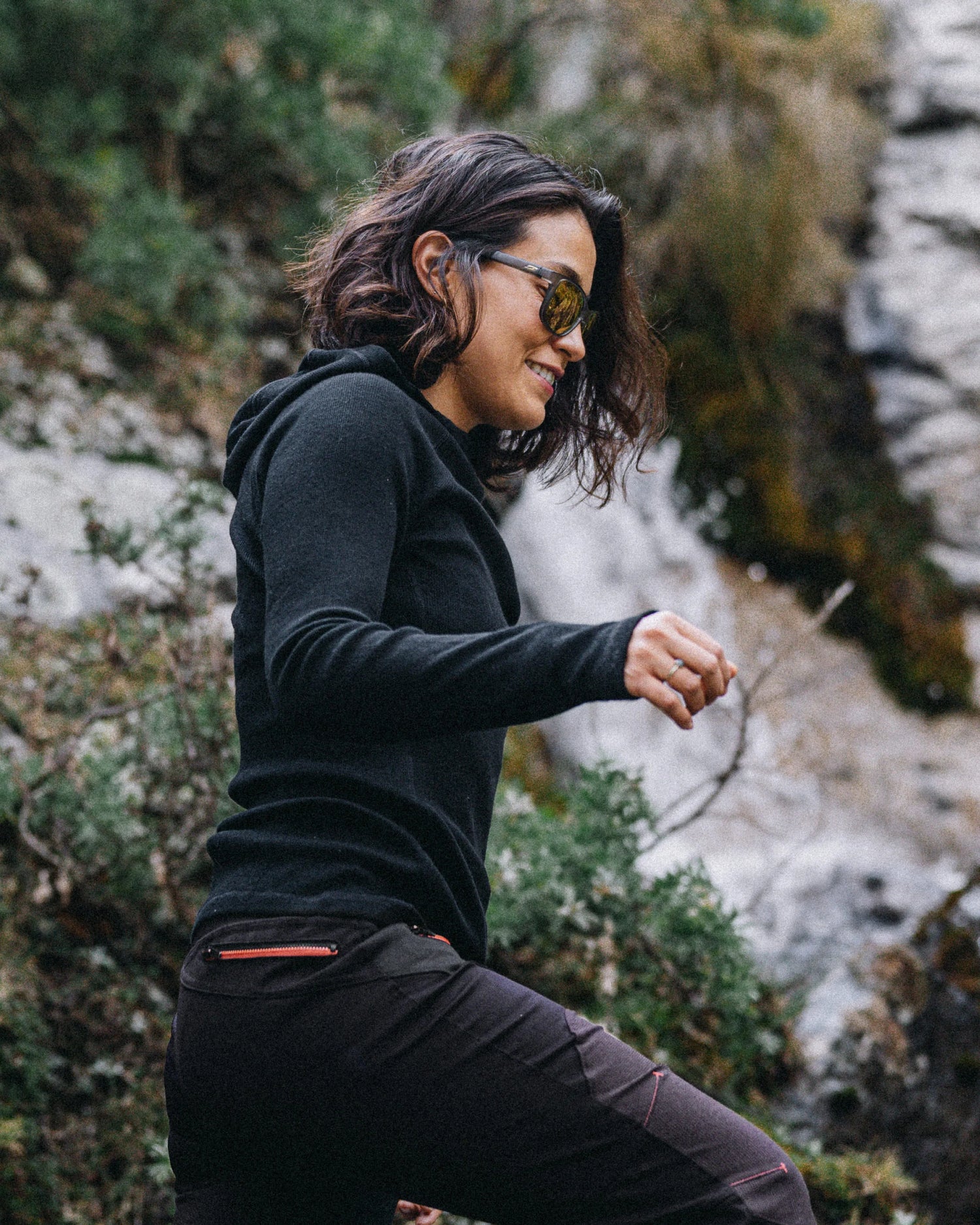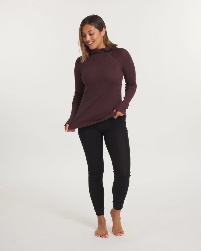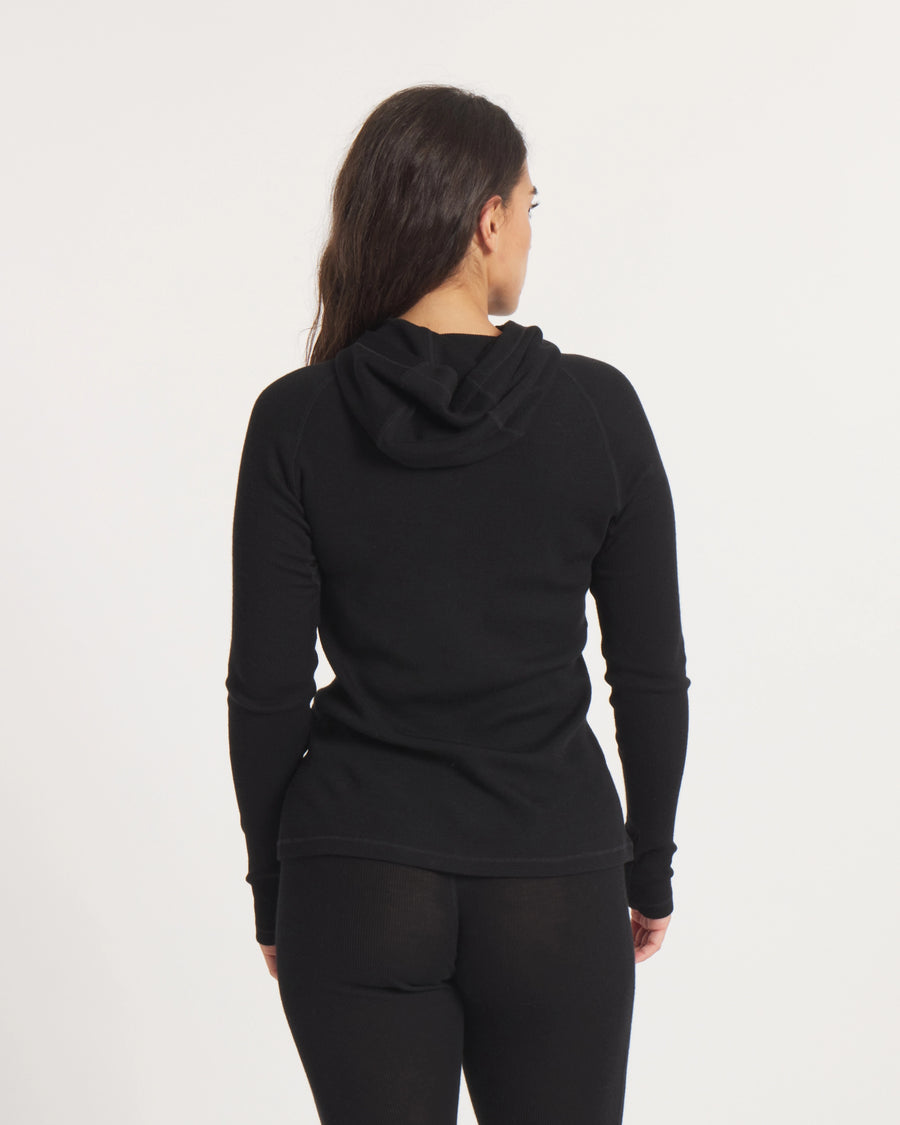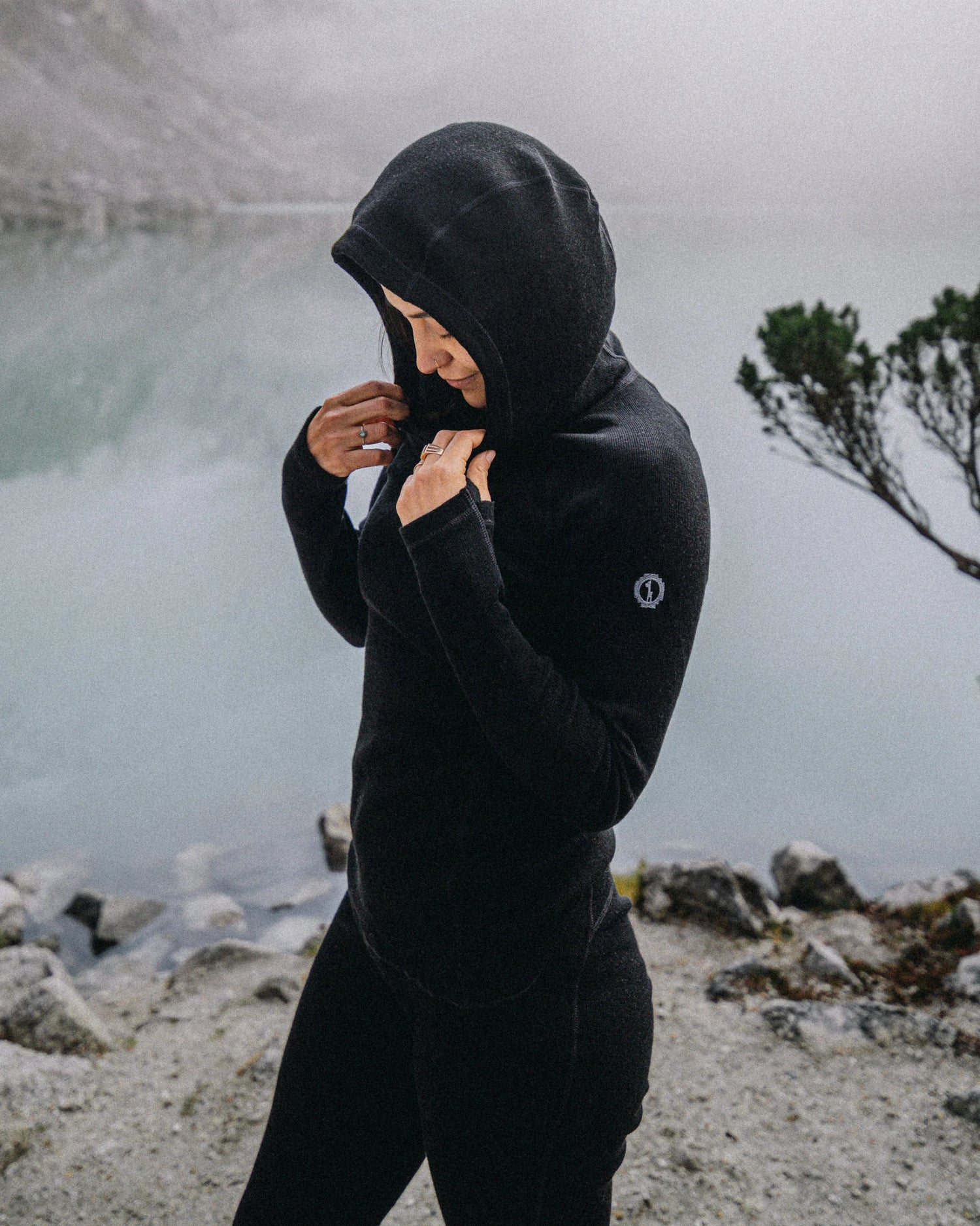 Build up the warmth with our Thermal Collection—made to keep things cozy, comfortable, and even stink-free thanks to earth-friendly ingredients and adventure-enhancing design. This thermal hoodie baselayer for women features a new and improved yarn blend to maximize durability and softness, while the updated slimmer fit makes it easy to layer. With an ergonomic hood, flat coverstitches for no itching or irritating, raglan armholes for freedom of movement, and improved thumbholes for security and coverage, this isn't your average baselayer!